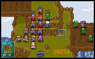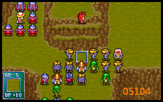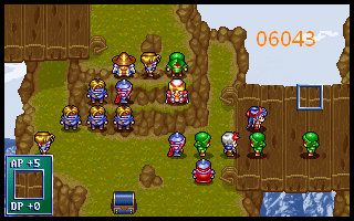 130、裘娜上四装配铜铠甲引暗黑骑兵,盖亚下二,费塔加上一右一交给盖亚武器引2冰导1佣兵围攻。形成下图09131。