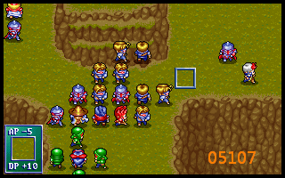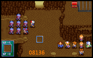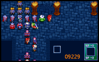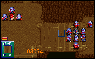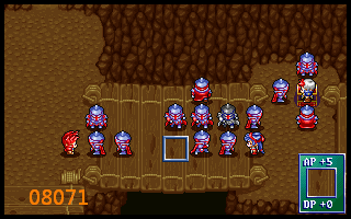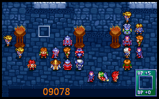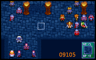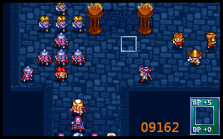 76、布兰多将左下暗黑骑兵(该暗黑骑兵此后仍归盖亚)向右引一格,打开向左的通路,如下图09078所示。