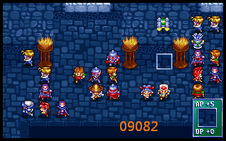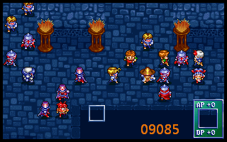 23、亚克下一左二,兰迪斯左二,布兰多休息,盖亚右一上一,形成下图09024,至此右侧边界定型。支撑该阵型需要2个角色,即盖亚兰迪斯处必须有角色站位。需要敌方回血时,盖亚就躲到柱子左边光标处。