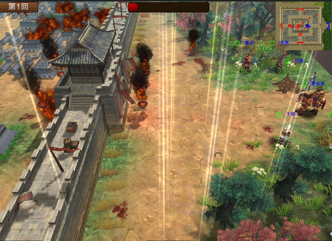 曹操和最强猛将吕布的「濮阳之战」,与强敌袁绍争河 北霸权的「官渡之战」,「三国演义」中最着名的「赤 壁之战」等,设定「三国演义」中既有的战场地图,胜 利条件;玩家一边尽最大限度活用自军的武将,完成各 战的胜利条件,透过战争展开「三国志」的故事。