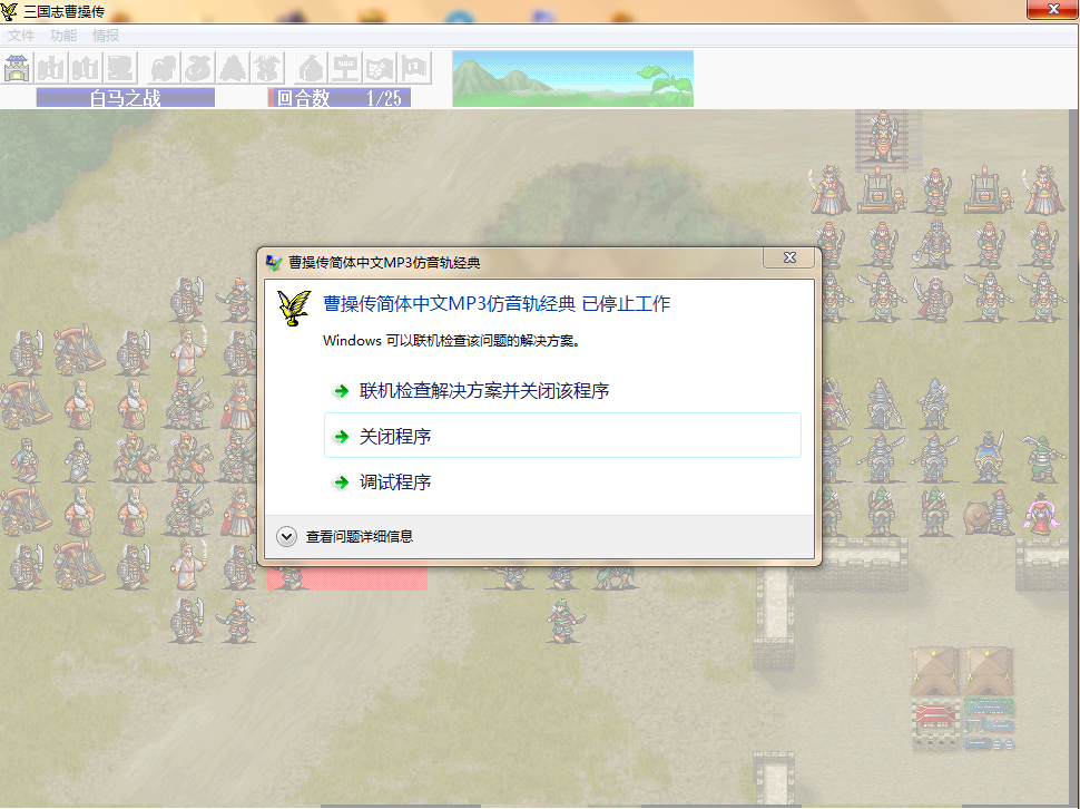 求组:(曹操传升级版MOD)攻击时鼠标移动到人物头顶马上游戏卡死,之后只能关闭游戏