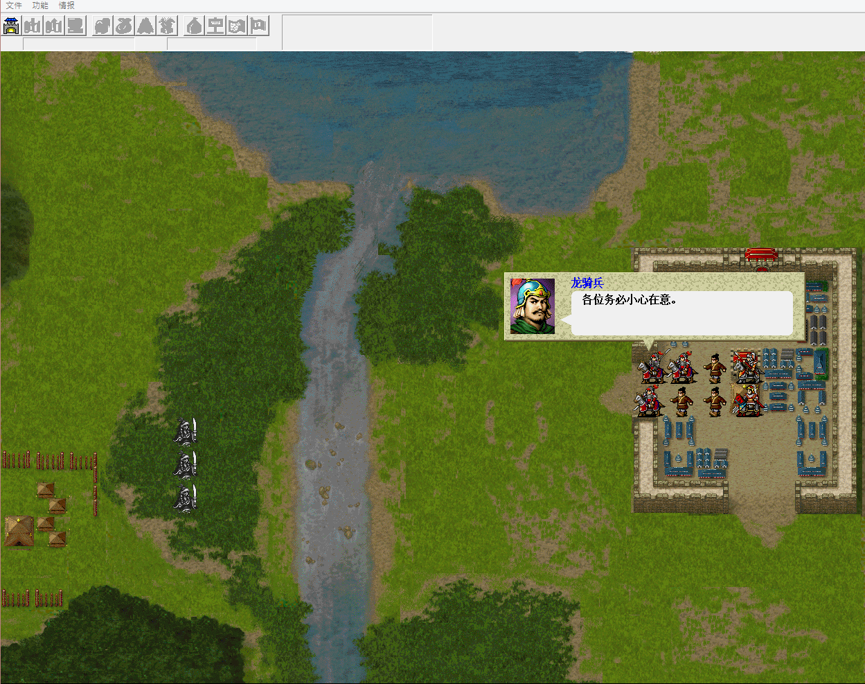 前几天开始玩定点吕布传,到56关(抢渡乌林)后发现没剧情,来到贵论坛好不容易找到57(赤壁之战2)与58关(魔窟之战)-由子墨虚乌有大制作,但第58关的讯息是乱码,因此小弟自己稍加改变一下,目前已完成第59关(伙伴救援战),目前正在写60关剧情,同时也正在向定点大大询问是否能继续延续定点吕布传的剧情,等待定大授权。