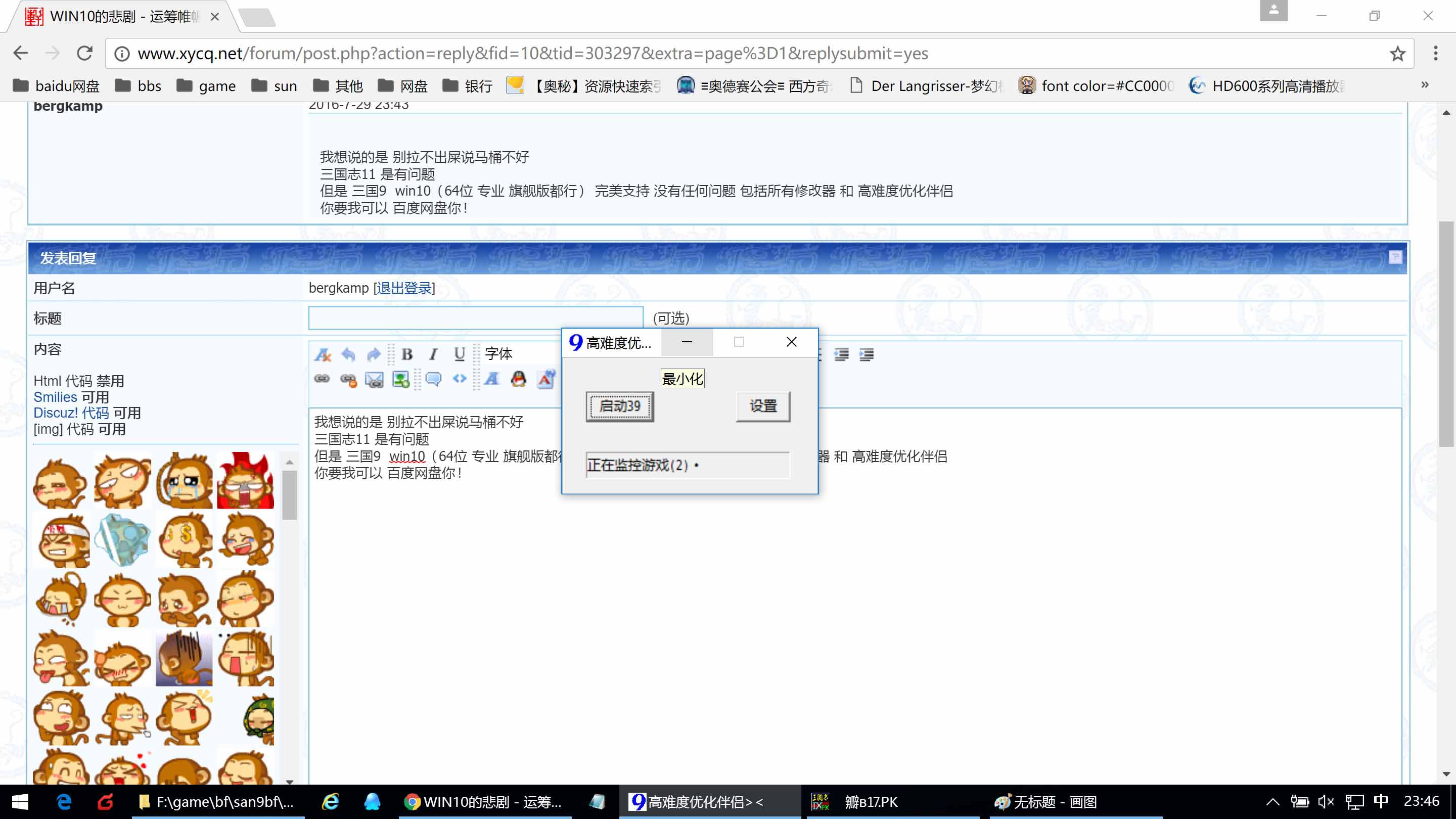 但是 三国9 win10(64位 专业 旗舰版都行) 完美支持 没有任何问题 包括所有修改器 和 高难度优化伴侣
