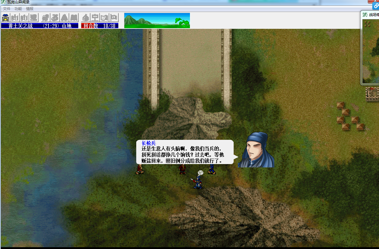 打到济南之,出现过两三次:单雄信发动怒目的时候,敌方只损了MP,却不损HP。打了最新补丁,游戏绝无修改。只是在南阳之后用扳手读取了程咬金是加武力还是统帅,但仅仅是读取,读完后关了扳手重开游戏。