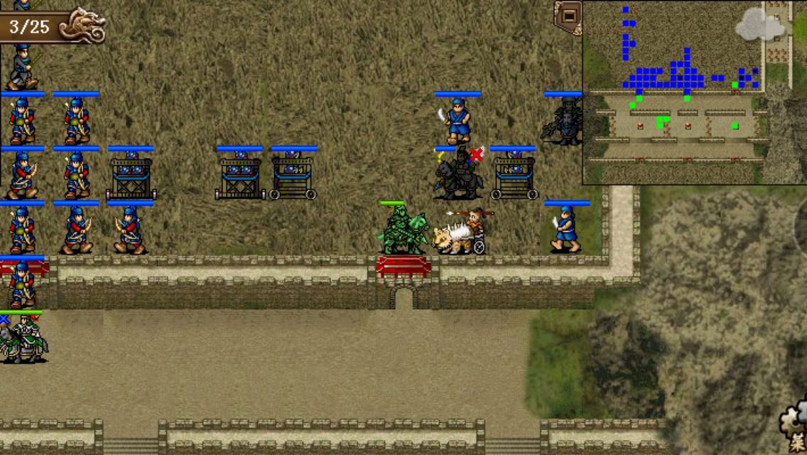 本关比较简单,赵云一人即可杀光所有人。左边张苞马岱一直后撤,赵云加攻加防后,直接打马上前,一人枪挑所有西凉战车队,二回合反击即全部杀光,来多少杀多少,7回合杀光所有小兵。