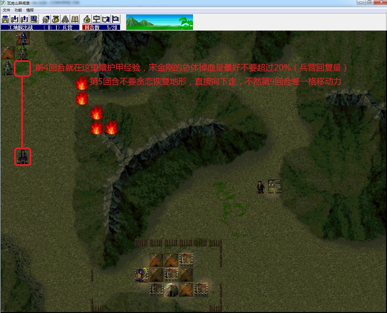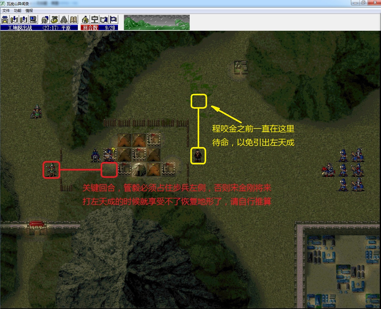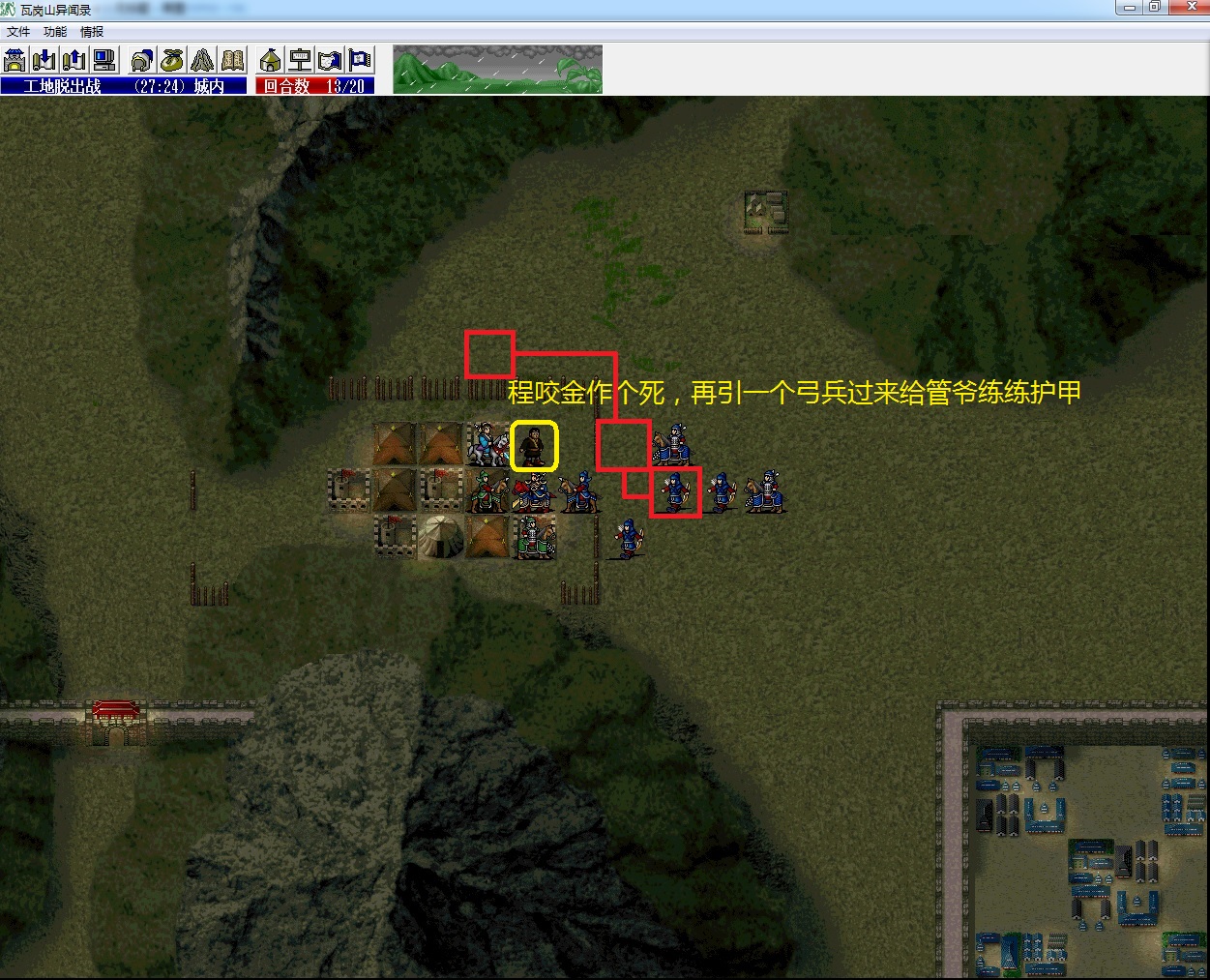 (2)谢映登把左侧所有四向兵种全部勾引到左边山上去;