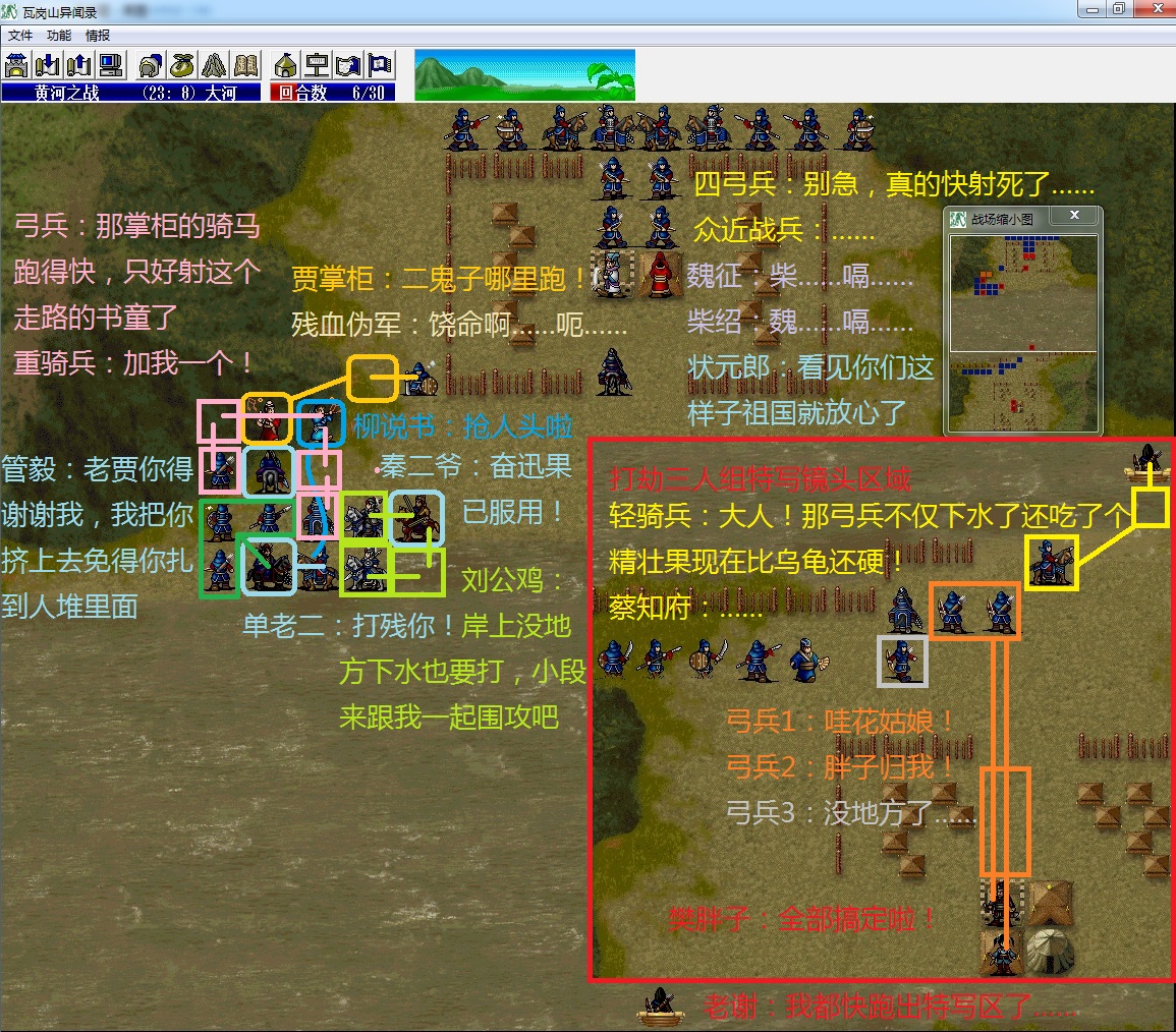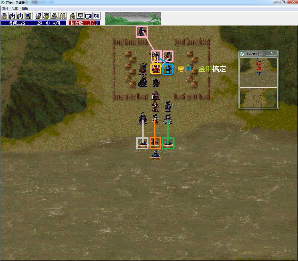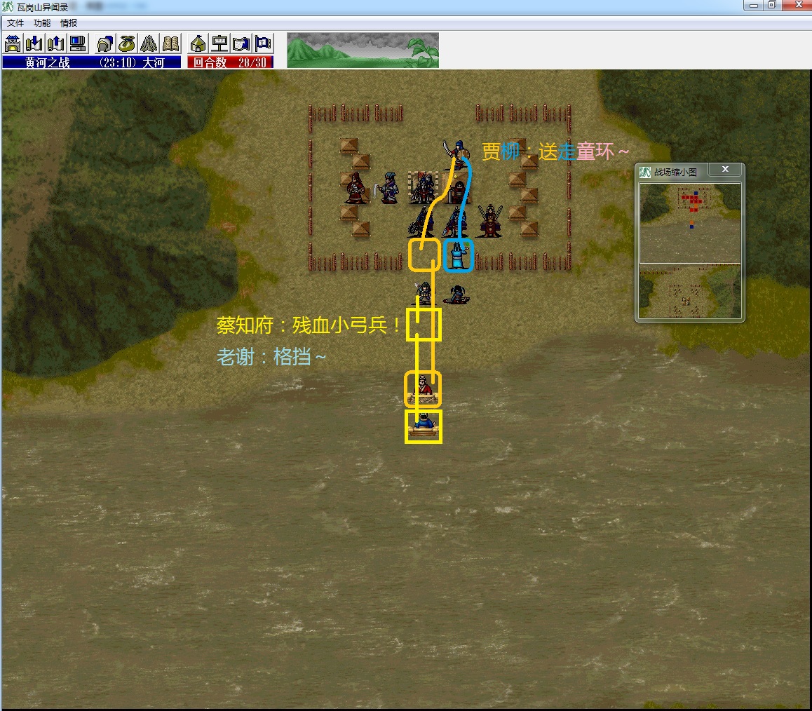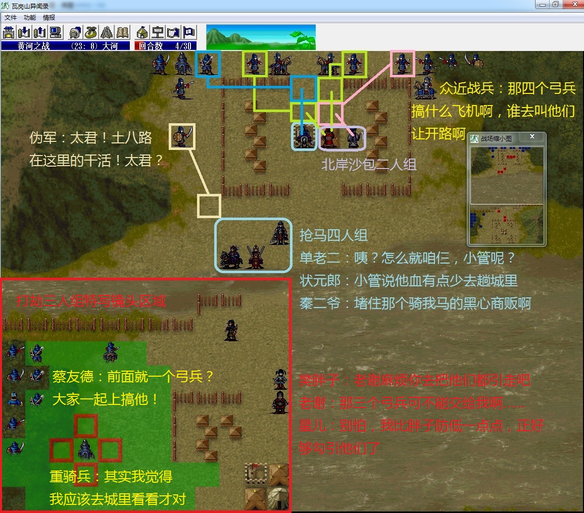 (2)谢映登把左侧所有四向兵种全部勾引到左边山上去;