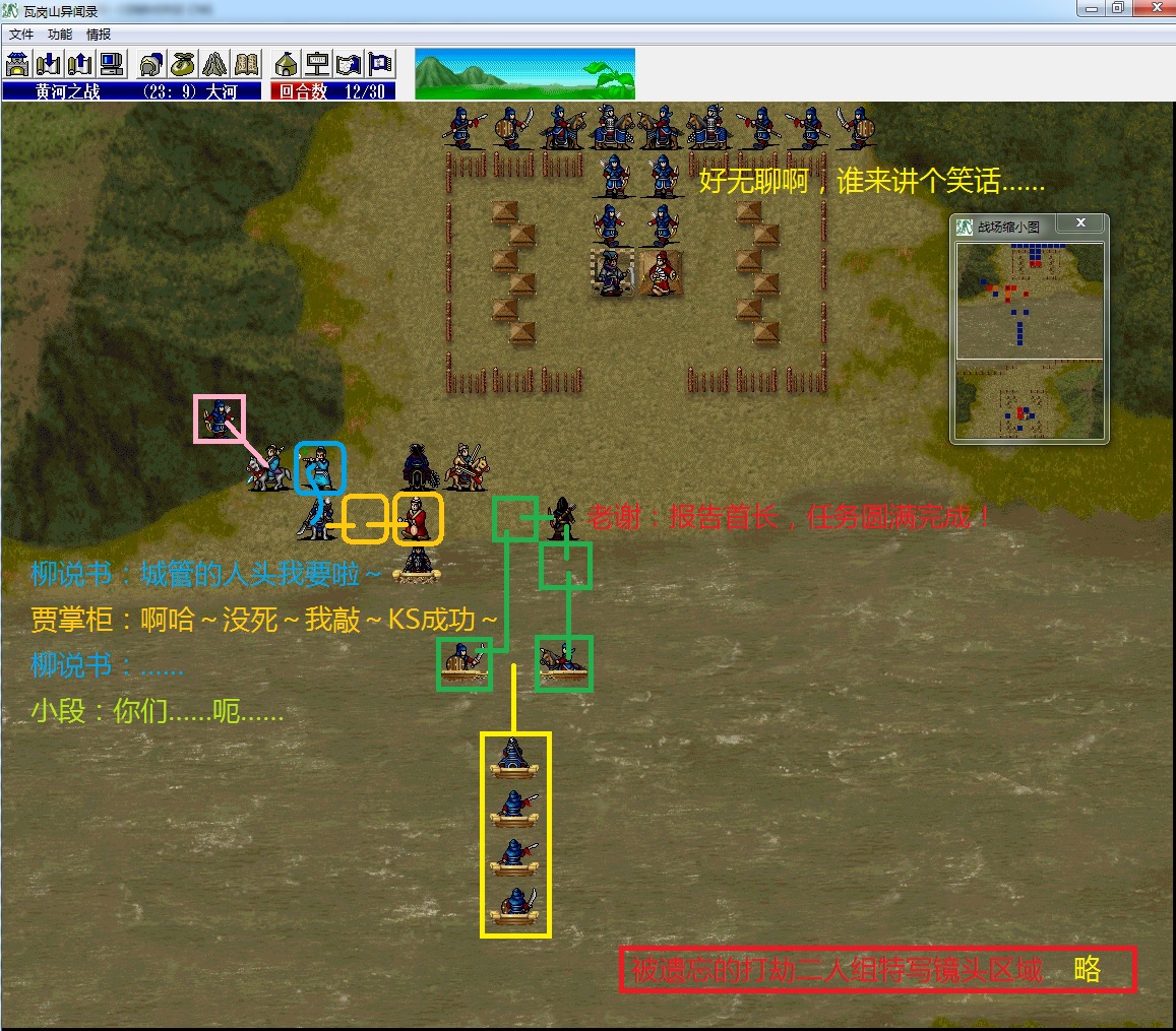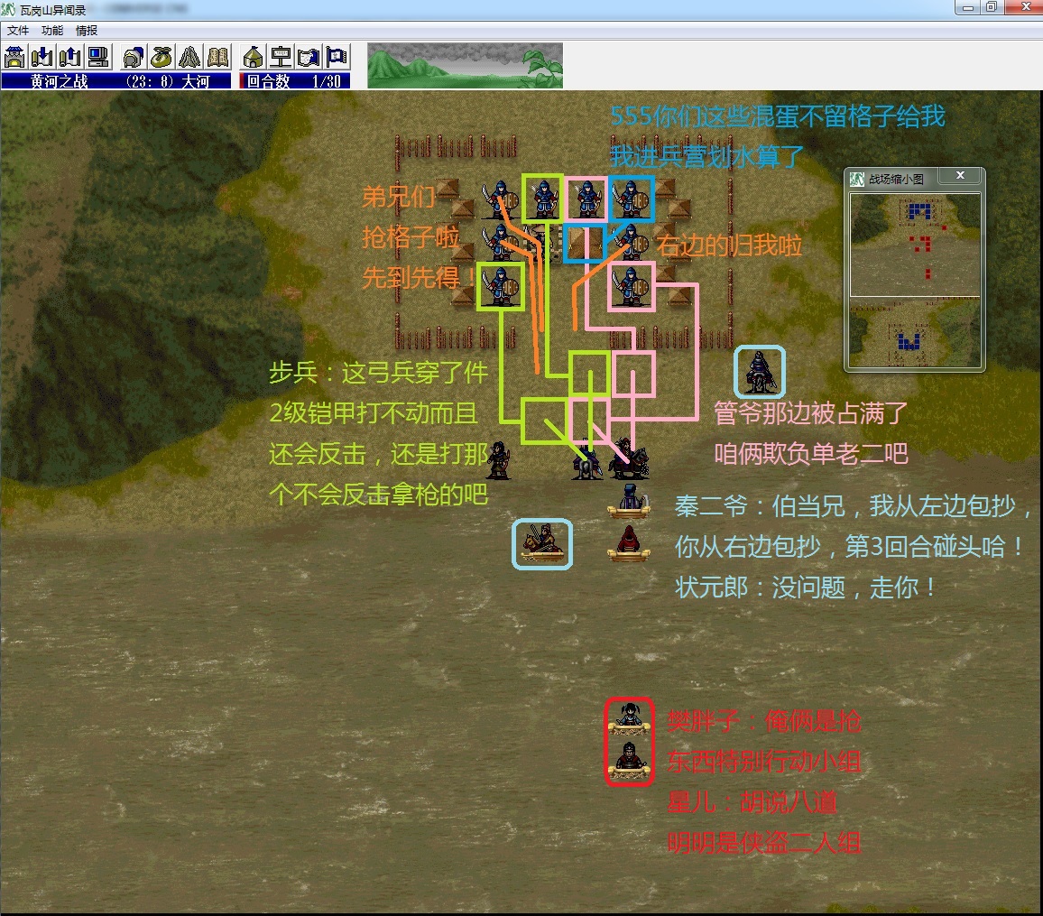 战前选择的求助李密,所以隔壁老王不在(求助李渊可能更好一些,王伯当比较扛揍,而且齐国远去了右上角之后吃个精壮果不管混不混乱肯定是不会死的)。