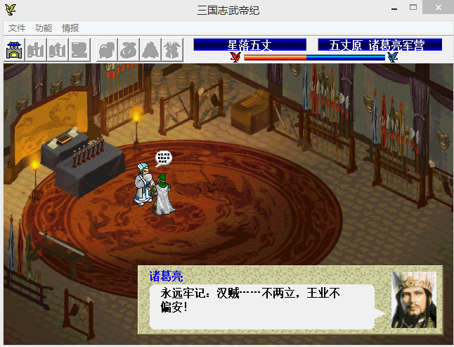 多谢大家的支持,目前本作品进展一切顺利,会在4月份按时完工。现在已经完成了历史线,历史线的s剧本以司马懿和诸葛亮的五丈原之战作为最后一关,r剧本一直写到天下归晋。为提升剧本精彩度,在剧本中描绘了多人梦中的场景。历史线结局的几张预览图如下。