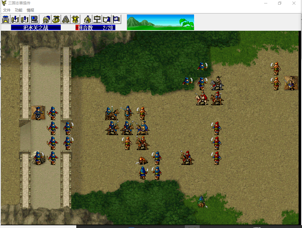 用曹操2次拉出关内步兵转给草丛内的曹仁(饱和)