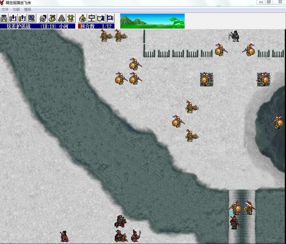 汤怀带震天弓+斗甲+金镖,第一回合走到敌军大营中9个村庄的中间位置气合,确保所有会被所有骑兵包围,不会被金兀术单挑。张九成向右挪开位置自己加防御,不要挡住金兀术和两个弓骑的路,这样他们全军就去攻击汤怀了,等他们离开,张九成上去抢占鹿岩和宝物库拿东西。