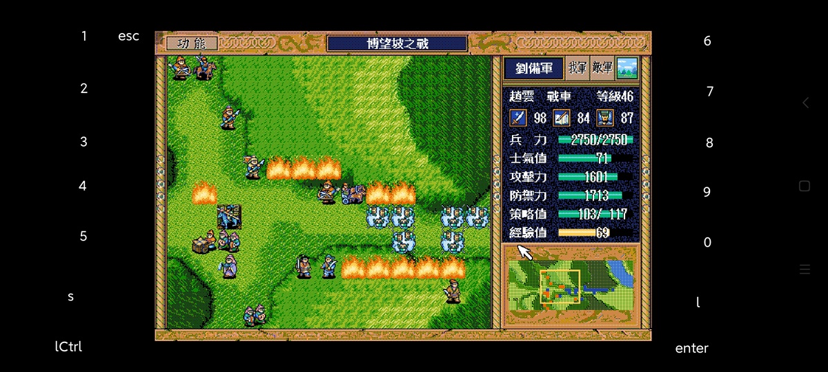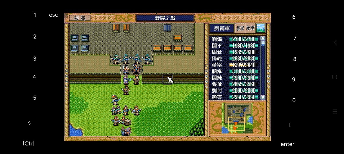 5回合初上路图,4回合关退回激励自己给云援助,何上去牵制并反击,能两次都反最好(重要,影响贼兵走位也节省贼兵策略),但是要4回合也雨天武术才会攻何,好不容易雨天了何还不反击,太难,最后我只反击了异民族。