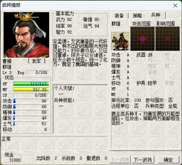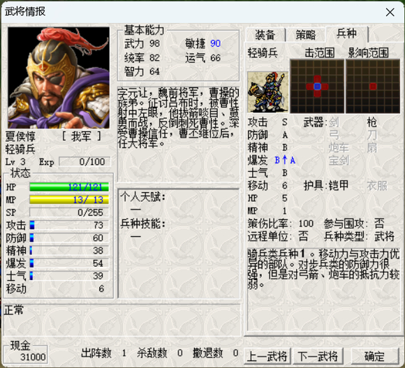 至于我是怎么发现的呢。。。是我把开局等级调到50级之后, 在自选难度100%成长的情况下颖川之战变得极其难打, 最后卡了快一小时调整了几次打法才在19回合勉强过关