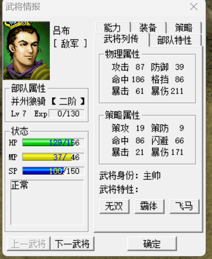 这是我两年前改的exe,在毅大的旧引擎上修改的。删掉了原版的特性代之我自己修改的,武将、兵种、宝物的特性加起来有500左右。先下载毅大的旧引擎文件再下载我的文件覆盖掉原版的文件就可以试玩,在游戏中查看效果。