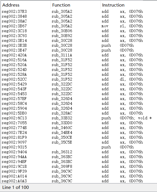 seg002:300D 05 76 D0 add ax, 0D076h