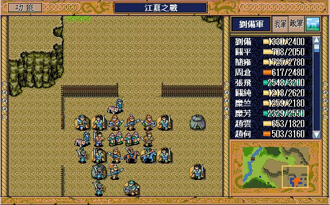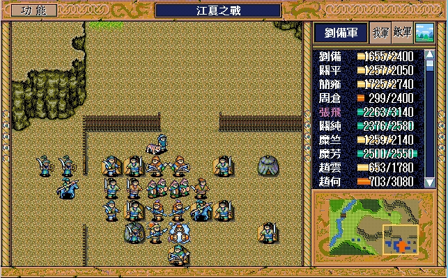 此时我方还有赤兔马、5把武器、剑术指南书、弓术指南书、长枪共9个道具,加上新买的66个道具,空位绰绰有余,只要刘备、赵云身上不带满道具即可。