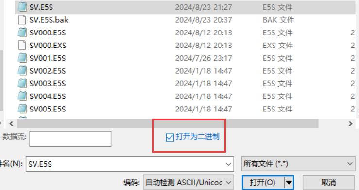 1.用UE打开SV.E5S,注意要用二进制打开