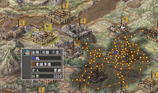 这次的主人公是曹操,在本剧本里曹操在洛阳,手下是六个曹家弟子(仁、真、昂、丕、彰、植)和二军师(贾诩、郭嘉),外带赠品岑昏。曹操的对手是诸葛亮,与上次刘备的剧本相比难度更大,因为对手除了有49城之外还有68个设施,而且电脑的兵力和财力也进行了加强。为了方便大家游戏,去掉了克隆武将设定,也解除武将间兄弟设定,但是曹操方面10人各有64个仇敌。曹操初始兵力16万,而周围城市除长安之外都只有10万,应该比较好进攻。