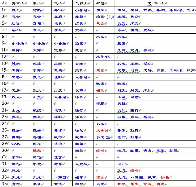 步兵会灼热、浊流、毒烟等基础攻击策略、咒骂系;