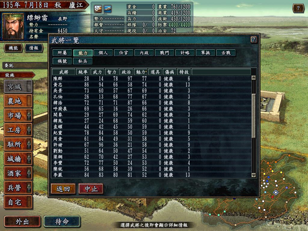 这点光荣肯定是始料不及的,在SX时代一般不可能会有人放弃这么大的权势而归隐吧。我用的这个存档里手下有两个都督,本来应该各自成为一方势力的。