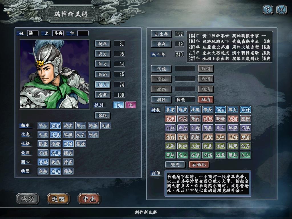 考虑到历史上张宪在岳家军的地位。。给了个90,其他都是83-4左右
