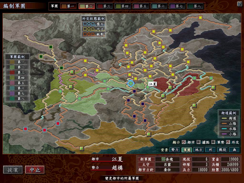 在政厅的任免这一栏有一个编制军团,所有突起的小方快都是你可以编制的目标。不要太贪心,最好一个个编,反正编制是不费时间的。要多了一般会被拒绝。