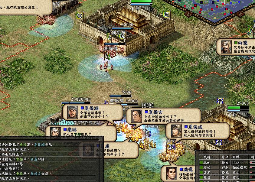 待刘禅出发后,诸葛又神秘莫测地对刘备说:“主公,刚才臣问了一卦,定陶、琅蚜、小沛皆有灵气,可派人搜索得宝,遂安排孙乾----定陶、吕凯----琅蚜、董和--小沛搜索。小沛就先不要派其他人乱搜了,免得碑文事件发生,学会医疗的人不是你所希望的人。待史记拿到,让邓芝携带史记去搜可学得医疗,还智力+2。另外派所有文官去定陶做丝织品生意,以充军资。其他人可运送部队到前线训练,部署军队,彭城半路截杀曹军。”刘备大喜,叹曰:“吾得孔明如鱼得水也!”这边惹闹了关羽和张飞,张飞挪喻道:“哥哥这次何不让‘水’去?”。刘备板脸:“三弟休得胡言乱语,智赖孔明,勇赖两位义弟。”这边关羽一捋长须,拉着张飞,哈哈大笑,出了小沛往彭城而去。