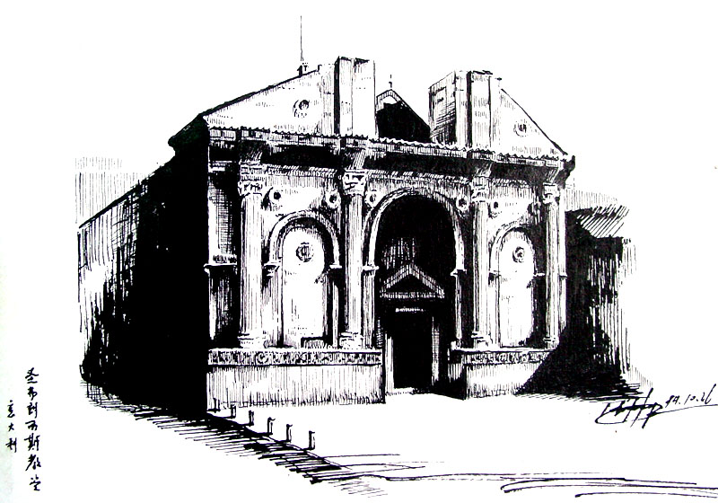 用美工笔画的,竟然这副样子。当时很迷信美工笔,后来才发现它根本不适合我常画的主题,在后来发现圆珠笔居然是个好东东。可惜好几幅圆珠笔画的“佳作”忘了最终归宿,不知是送人了还是在哪个角落里藏着。