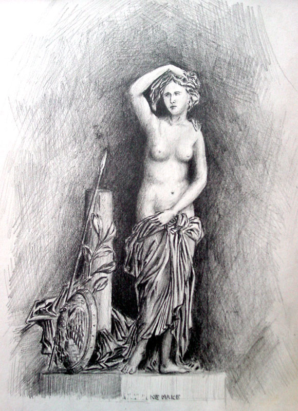 罗丹有个雕塑作品,我就是仿这个的,找了张表格背面就画了,真是因陋就简。当时很满意,现在看真别扭!