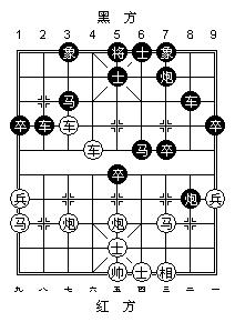 黑抓住红右底相的弱点不放,争得一系列先手,现驱卒涉水,如虎添翼,红已难抵御。