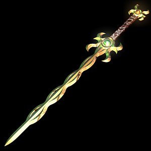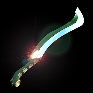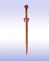 此剑用白金、龙铁精炼而成,顶端圆滑,刃走圆弧,锋利无比,光可照人。剑身镶嵌龙睛宝石,夜间可持剑而行,三丈之内亮如白昼。相传此剑为晋朝勇士周处杀死水中蛟龙后,龙身化铁,经名匠反复锻打,精作而成。(周处:见《晋书·周处传》)