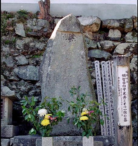奇袭了本能寺的信长,在2条城打败前来救援的信忠。与中国撤退的羽柴秀吉大战,败退近江坂本城途中被暴动的农民用长枪刺死。法号“光厳院殿涼月秀天大居士”。
