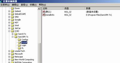 在"InstallInfo"="E:\\San10 Tc"这一段把"E:\\San10 Tc"改为你自己游戏的安装路径。