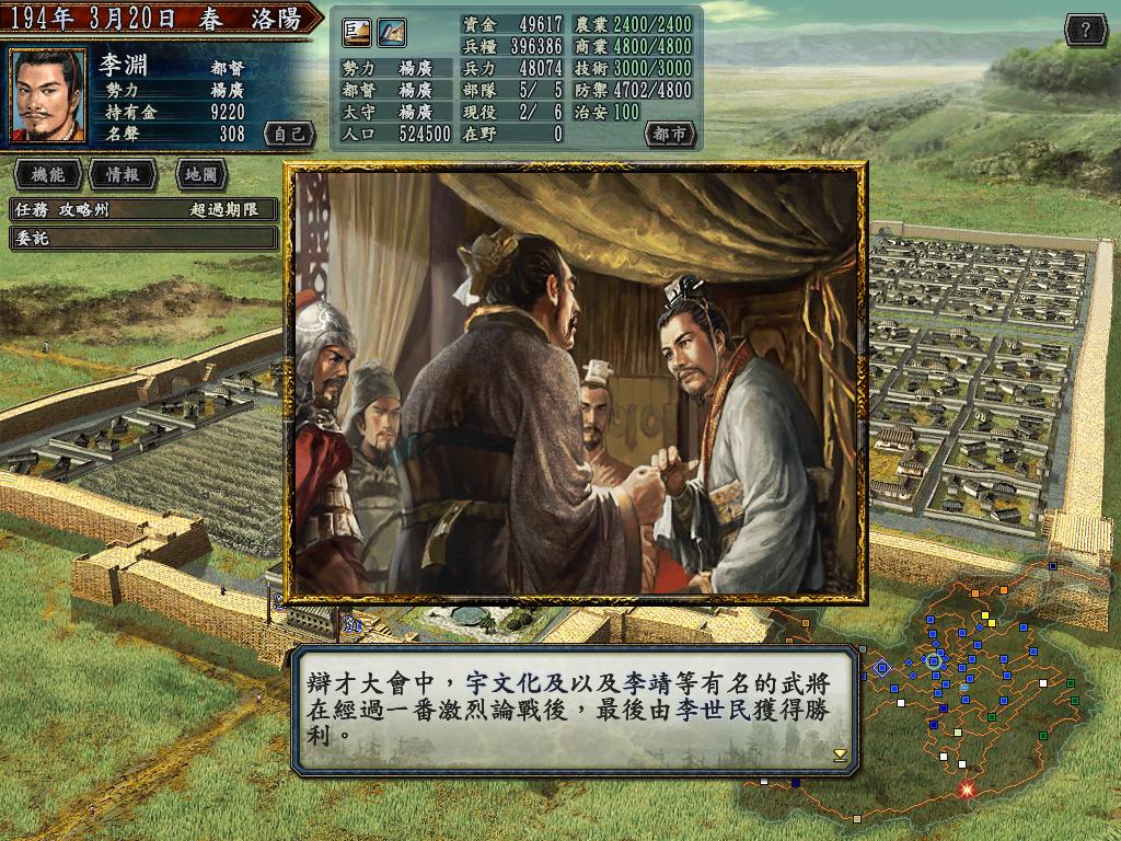 这是李渊大军第一次出兵,军容强盛,左首是长子李世民并大将殷开山、右首是次子李元霸并大将马三保,李渊居于中军,但见大军盔明甲亮,气势迫人。