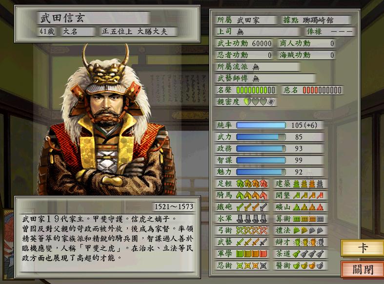我收人原则是1、统帅至少80以上,让他们去学足轻、马术、军学等作战技能,出战时必须军学4级,足轻或马术至少3级,那样打战一点都不累,还有就是让武田\真田等会风林火山作为领军团.