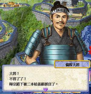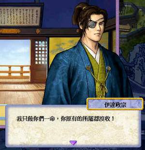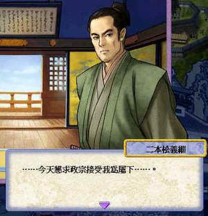 陪同辉宗出门送客的藤五郎与留守政景见此情状,忍不住高声尖叫。原来义继手中正拿着一把亮晃晃的利刃,抵住了辉宗的胸口。