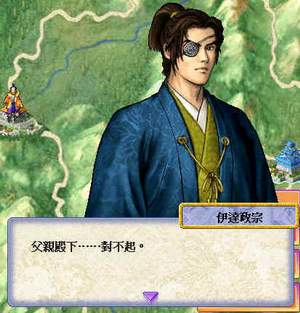 陪同辉宗出门送客的藤五郎与留守政景见此情状,忍不住高声尖叫。原来义继手中正拿着一把亮晃晃的利刃,抵住了辉宗的胸口。