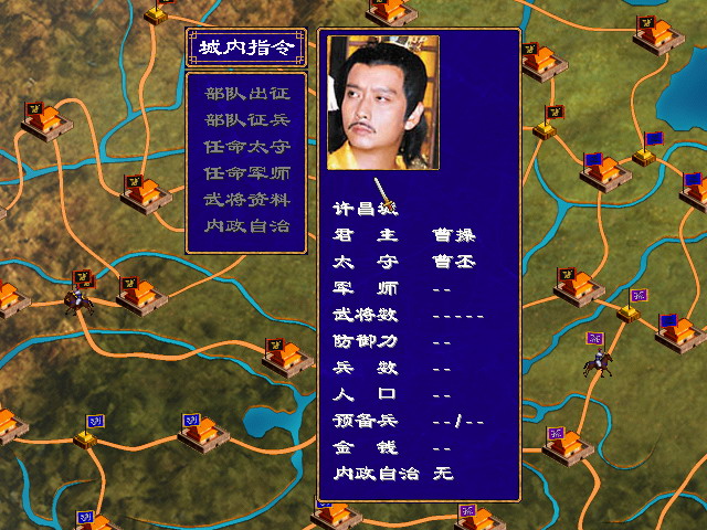 这是在大地图的情况,电脑的城池情况,全部隐藏,玩家无法查看。
