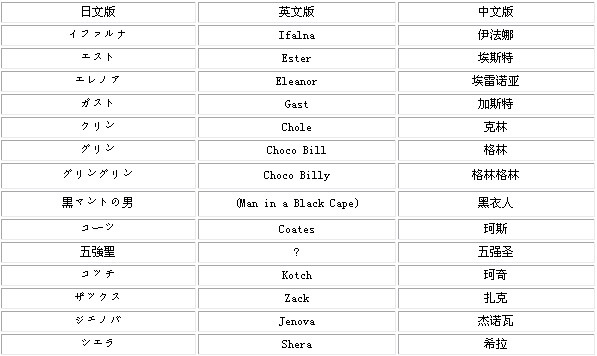 标题: [最新奉献]Final Fantasy人物名称对照表, 非Final Fantasy勿进