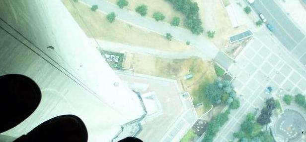 图中是甚么著名建筑物? 图里显示建筑物里面地板上铺上玻璃,可以看到下面。。。好高。
