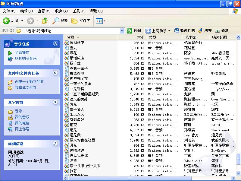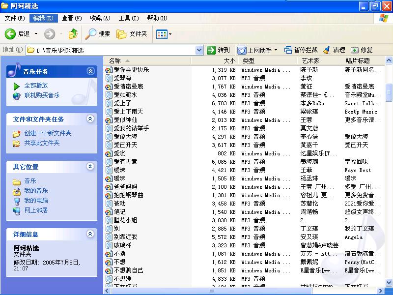 最近看见有许多推荐mp3中不可或缺的歌曲之类的帖子,心中痒痒。不免将最喜欢的三百首歌推荐给大家,以博一笑。