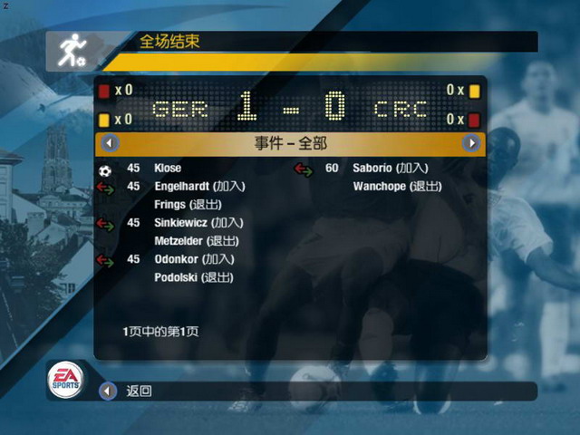 上半场补时阶段,克洛泽接波多尔斯基的边路传中,头槌破门,打入了2006年世界杯的第一粒进球,也使德国队取得了揭幕战的胜利。