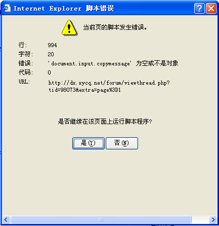 猜测是发帖的时候出现的吧,大概就是把发帖内容复制到剪贴板功能,出错通常是因为网络问题或者系统问题,点是或否均可,一般信任的网站点是,不信任的点否。