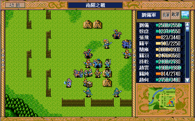 我 赵云开始左下激励糜竺,董梁下援助赵云,刘封上援助关纯(他俩都升级),关纯原地援助董梁、刘封,糜竺原地大激励(后于糜芳激励),刘备左下攻击消灭蒯越(否则堵路),关平左上援助周仓(理论上王威对刘备、关平的挑拨值要比周仓大,那么就让王威无法原地挑拨他俩,可降低王威用挑拨的概率,就看他原地挑拨或攻击周仓之间的概率取舍了,基本上S/L几下就整出攻击来了);