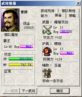 2、为了更好地培养新武将,所有新武将都3级加入,武器、防具每击(被击)获得经验均提高1;
