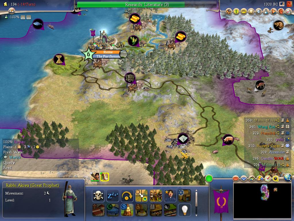 BC 1320,第一位大预言家拉比阿齐瓦在罗马诞生,赶紧去bombay建圣坛,路真远啊,要走6个回合,能不能快点啊,俺现在财政赤字严重