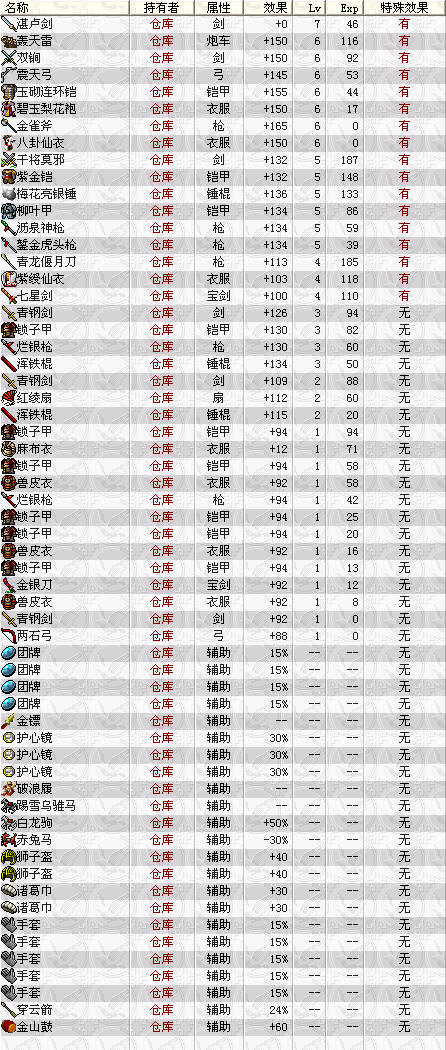 2) 7级柳叶甲+赤兔马(改成护心镜或杏黄旗也不行,由此可见赤兔马的+30%对所有物理攻击有效,而不是说明中的近战伤害)