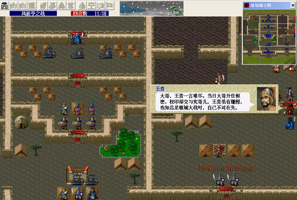 终于打到小商河了,出现了很多人都碰到过的问题,第四回合结束岳云只能勾引到一个弓箭手而无法在第五回合与杨再兴对话,在版上查阅无数贴子无果之后我自己修改了一下杨再兴和岳云的装备进行了测试,终于发现能让岳云产生吸引力的条件。。。