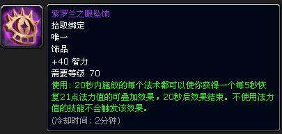 装备后效果:在成功施放法术后有2%几率可以触发100%魔法恢复的效果,持续15秒。