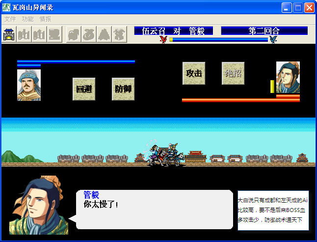 不过,天无绝人之路,瓦岗山异闻录的R单挑,虽然大有“把成都杨素挑着玩儿”的超级无敌绝顶高手;“把成都杨素挑残”的超级无敌高手;“和成都杨素打平”的超级绝顶高手;“除了成都杨素全部干掉的”绝顶高手。(不过不可能有:不损血干掉成都杨素才是“超级无敌天下第一绝对不会有第二个的绝顶高手”吧)但是还有些人抱怨R单挑难,这也算一个骗TB啊,增加发贴数的好机会。所以我来这里发图文教学。